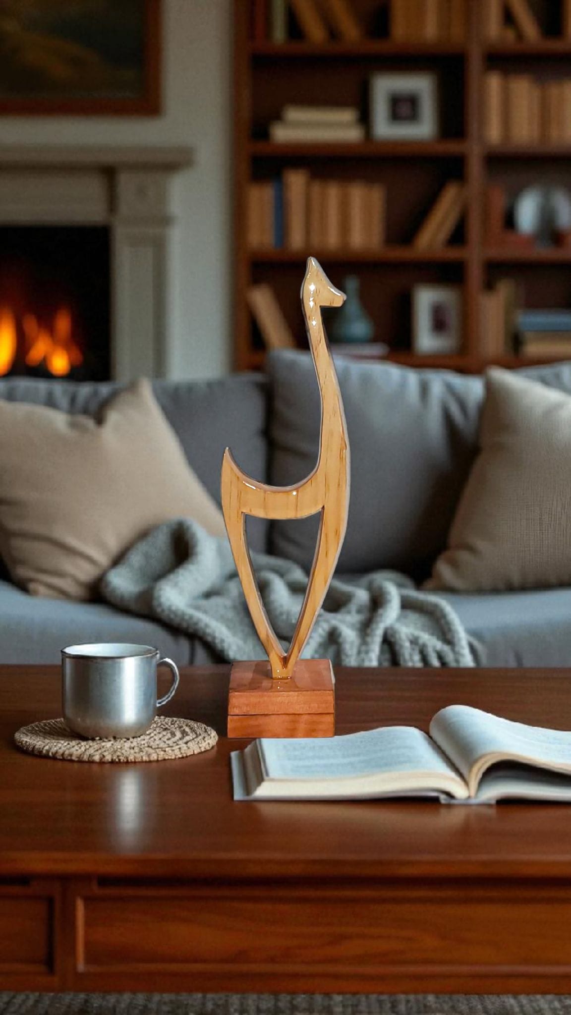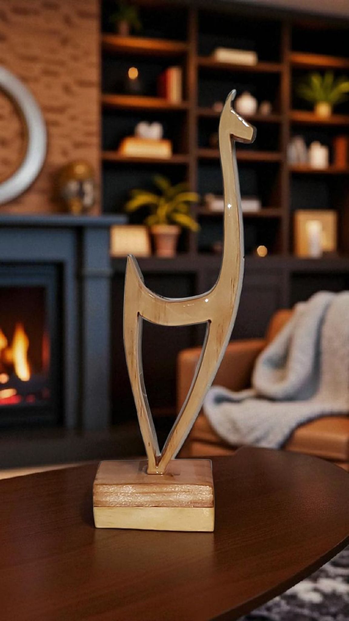 Elegante escultura artesanal tallada a mano con madera natural, diseñada con líneas minimalistas que transmiten serenidad y belleza. Su acabado fino y su base sólida la convierten en una pieza ideal para resaltar cualquier rincón del hogar, oficina o espacio artístico. Una fusión entre lo rústico y lo moderno, perfecta para amantes del arte en madera.